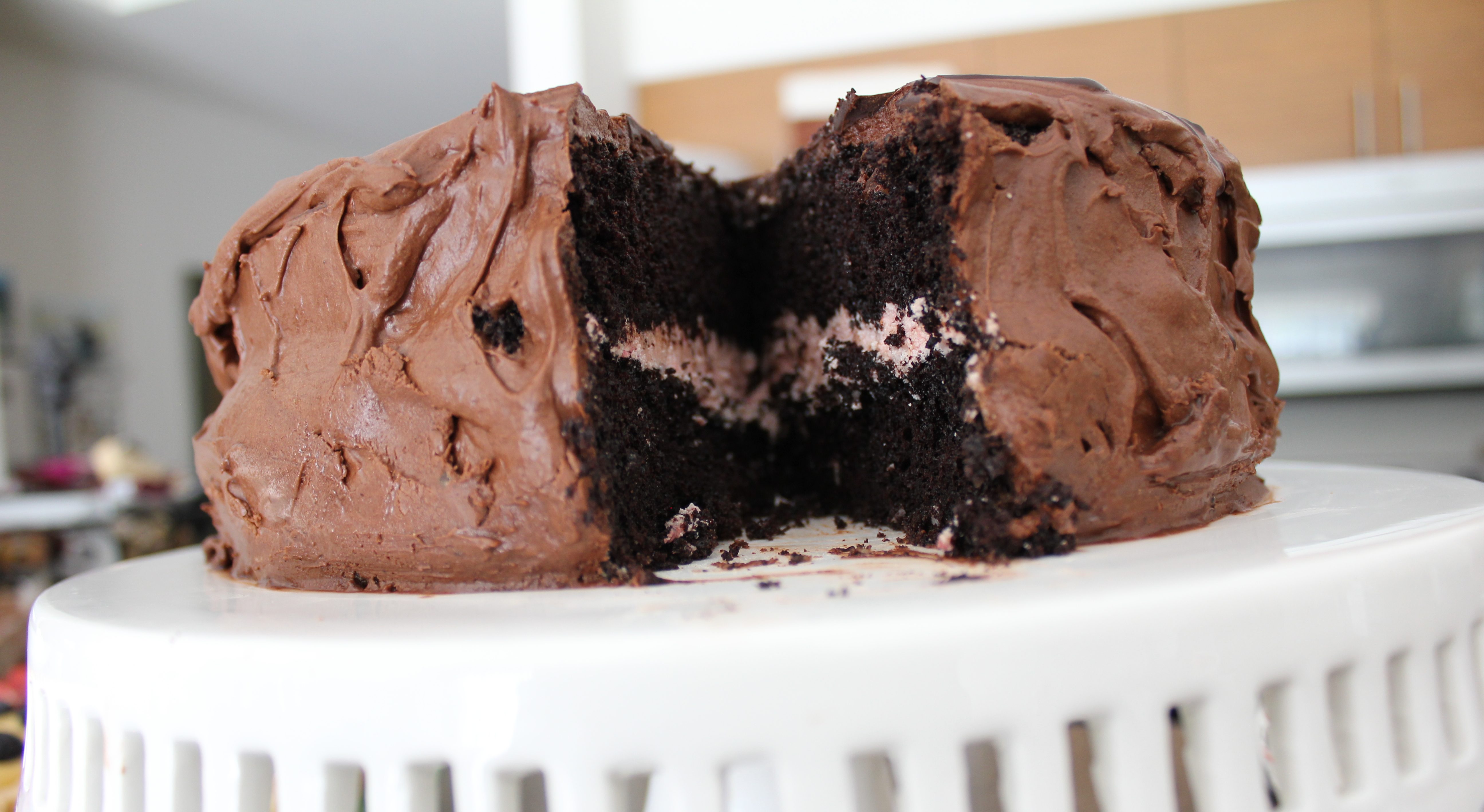 Coconut Raspberry Filled Chocolate Cake